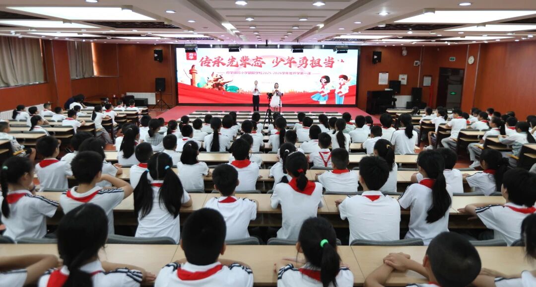 金秋九月,阳光洒满府学胡同小学朝阳学校,全校师生怀着无比喜悦的心情齐聚一堂,共同迎接2025-2026新学年的到来。今年恰逢世界反法西斯战争胜利80周年,学校以“传承先辈志 少年勇担当”为主题,打造了一场意义深远的开学第一课。